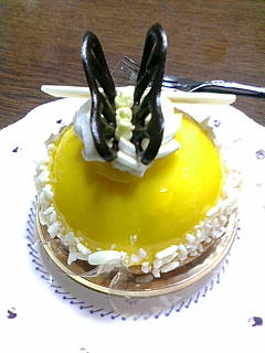 それから今日のケーキは折角だからパピヨンというちょうちょのケーキにして見ました。ホールで買うと余計なケロリー取るので単品オーダー。